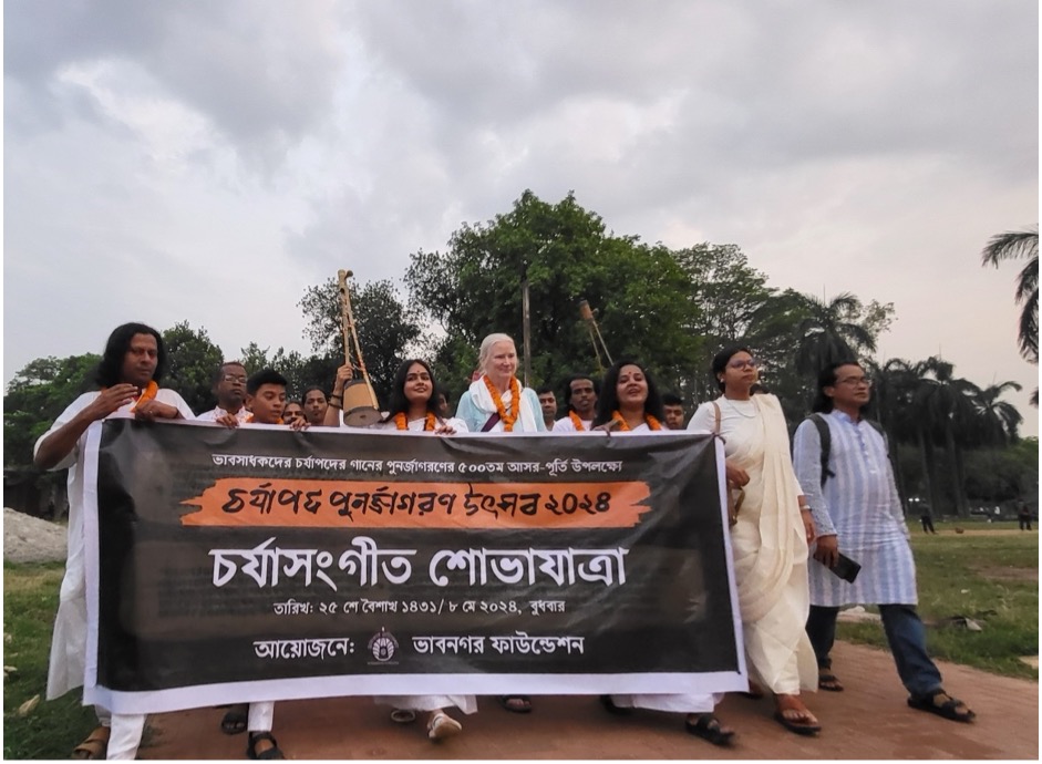 American scholar professor Rebecca J. Manring had participated in the procession of the Charyapada Revival Festival 2024 with the Baul-Fakir community. ©Saymon Zakaria